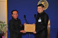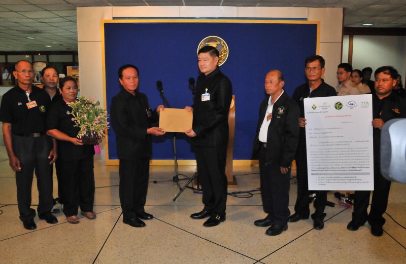 รองประธานสภานิติบัญญัติแห่งชาติ คนที่สอง รับยื่นหนังสือจากนายสมนึก ยิ้มปิ่น ผู้จัดการสมาคมชาวไร่ยาสูบเบอร์เล่ย์ จังหวัดสุโขทัย