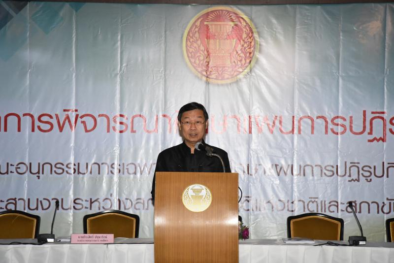แถลงข่าวผลการพิจารณาศึกษาแผนการปฏิรูปกิจการตำรวจของคณะอนุกรรมการเฉพาะกิจเพื่อศึกษาแผนการปฏิรูปกิจการตำรวจ ในคณะกรรมการประสานงานระหว่างสภานิติบัญญัติแห่งชาติและสภาขับเคลื่อนการปฏิรูปประเทศ