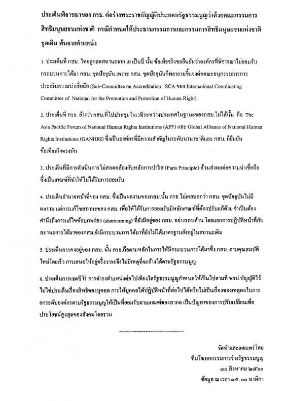 ว่าด้วยคณะกรรมการสิทธิมนุษยชนแห่งชาติ พ.ศ. .... กรณีกำหนดให้ประธานกรรมการและกรรมการสิทธิมนุษยชน
