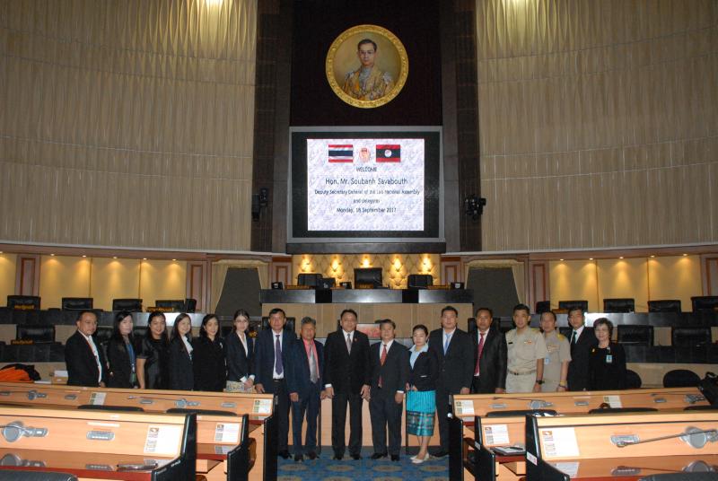 สะวะบุด รองเลขาธิการสภาแห่งชาติสาธารณรัฐประชาธิปไตยประชาชนลาว และคณะ ในโอกาสเดินทางมาเยือนประเทศไทย เพื่อศึกษาดูงานสำนักงานเลขาธิการสภาผู้แทนราษฎร โดยได้มีการสนทนาเกี่ยวกับการบริหารราชการของสำนักงานเลขาธิการสภาผู้แทนราษฎรและสภาแห่งชาติ สาธารณรัฐประชาธิปไตยประชาชนลาว การแลกเปลี่ยนความรู้ด้านกระบวนการนิติบัญญัติ เพื่อเสริมสร้างประสบการณ์ในการทำงานระหว่างเจ้าหน้าที่ของทั้งสองประเทศ รวมทั้งสนับสนุนความสัมพันธ์ระดับเจ้าหน้าที่ ตามโครงการแลกเปลี่ยนข้าราชการสำนักงานเลขาธิการสภาผู้แทนราษฎรกับต่างประเทศเวลา ๑๐.๓๐ นาฬิกา ณ ห้องประชุมคณะกรรมาธิการหมายเลข ๑ ชั้น ๓ อาคารรัฐสภา ๑ นายจีรพงศ์ วัฒนะรัตน์ ที่ปรึกษาด้านกฎหมาย พร้อมด้วยผู้บริหารสำนักงานเลขาธิการสภาผู้แทนราษฎร ร่วมพบปะหารือกับนายสุบัน สะวะบุด รองเลขาธิการสภาแห่งชาติ สาธารณรัฐประชาธิปไตยประชาชนลาว และคณะ โดยได้มีการบรรยายสรุปเกี่ยวกับบทบาทหน้าที่ของสำนักงานเลขาธิการสภาผู้แทนราษฎรในการให้การสนับสนุนการดำเนินงานของฝ่ายนิติบัญญัติ