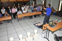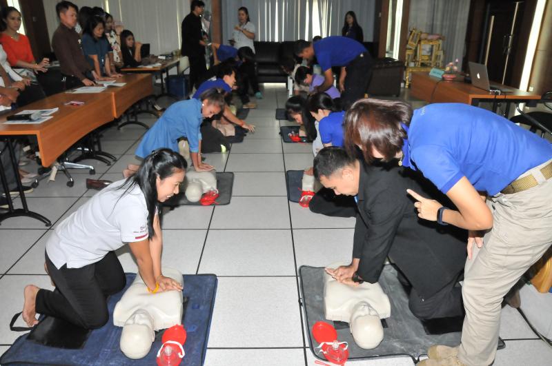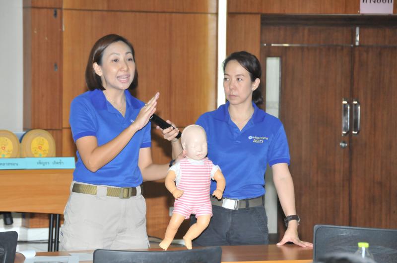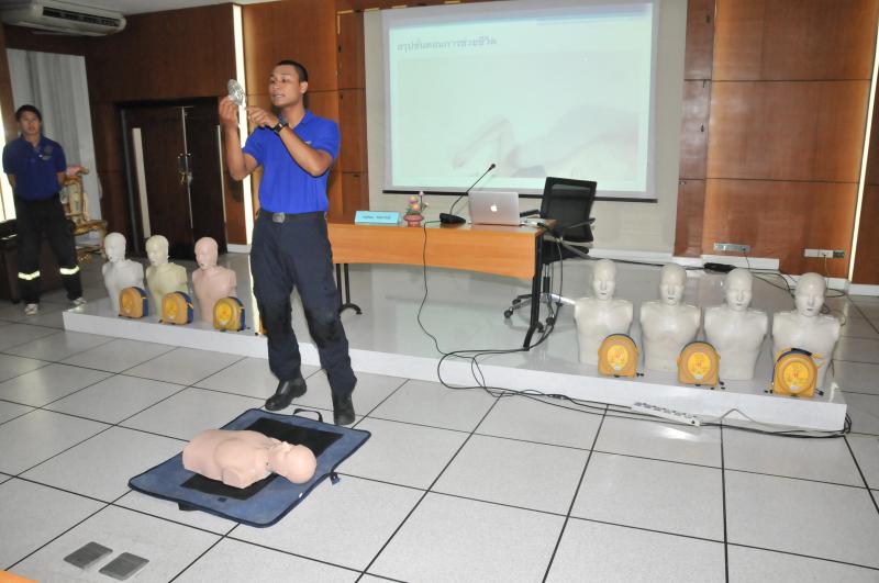 - การใช้เครื่อง AED (Automated External Defibrillator)  ร่วมกับการทำ CPR สำหรับในภาคบ่าย จะเป็นการให้ความรู้และฝึกปฏิบัติ รุ่นที่ ๒
