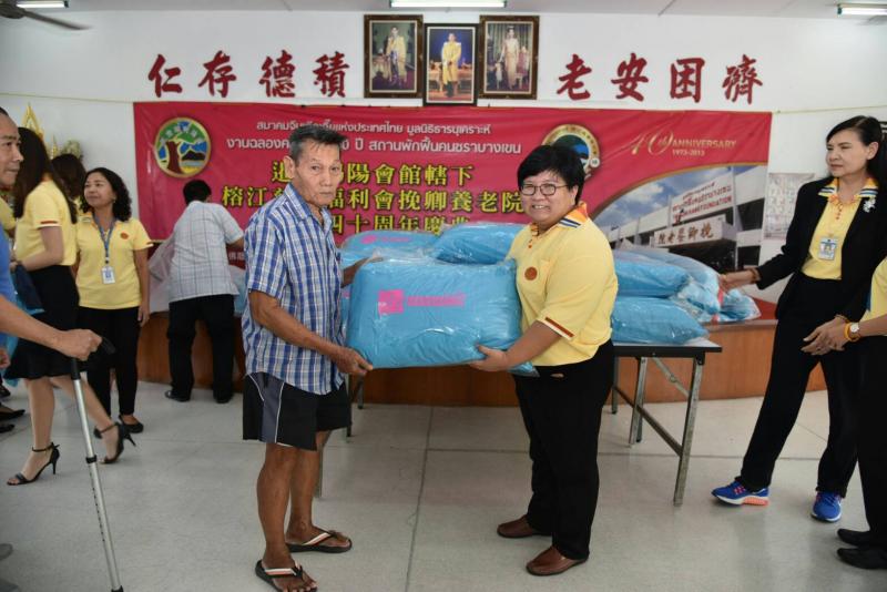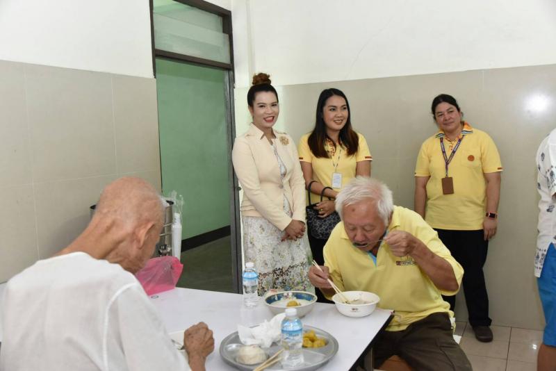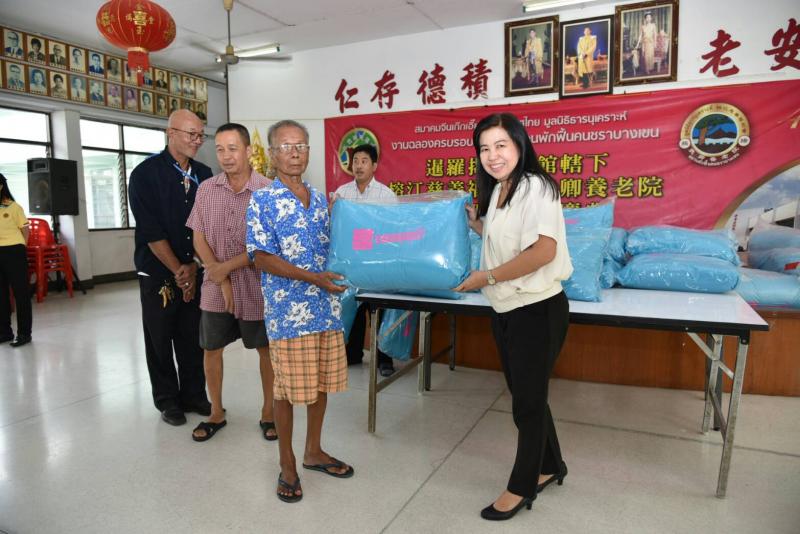 ห้แก่ผู้สูงวัยที่ขาดแคลน พร้อมมอบเงินช่วยเหลือมูลนิธิฯ และเลี้ยงอาหารกลางวันแก่ผู้สูงวัย จำนวน ๙๐ คน