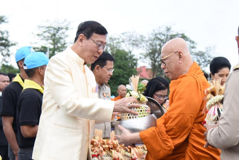 วิชิตชลชัย ประธานสภานิติบัญญัติแห่งชาติ เข้าร่วมในพิธีทำบุญตักบาตรข้าวสารอาหารแห้งพระสงฆ์ และ