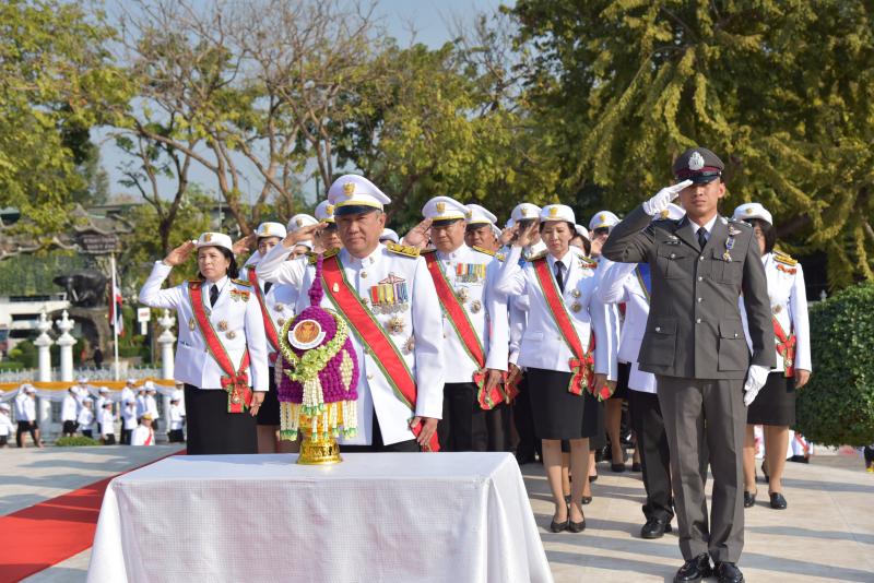 เลขาธิการสภาผู้แทนราษฎร พร้อมด้วยผู้บริหารและข้าราชการ สำนักงานฯ นำพานประดับพุ่มดอกไม้ถวายบังคม พระบรมราชานุสาวรีย์พระบาทสมเด็จพระปกเกล้าเจ้าอยู่หัวในนาม “สำนักงานเลขาธิการสภาผู้แทนราษฎร”