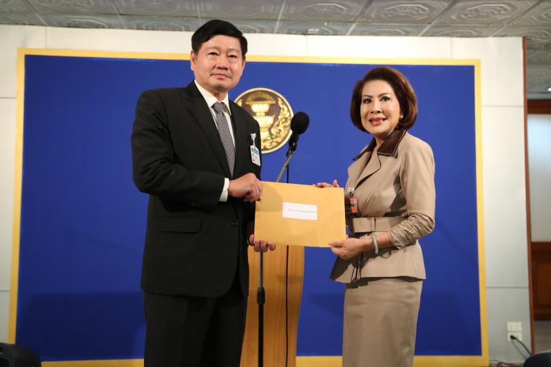 นายพีระศักดิ์ พอจิต รองประธานสภานิติบัญญัติแห่งชาติ คนที่สอง รับยื่นหนังสือ จากนางรวิฐา
