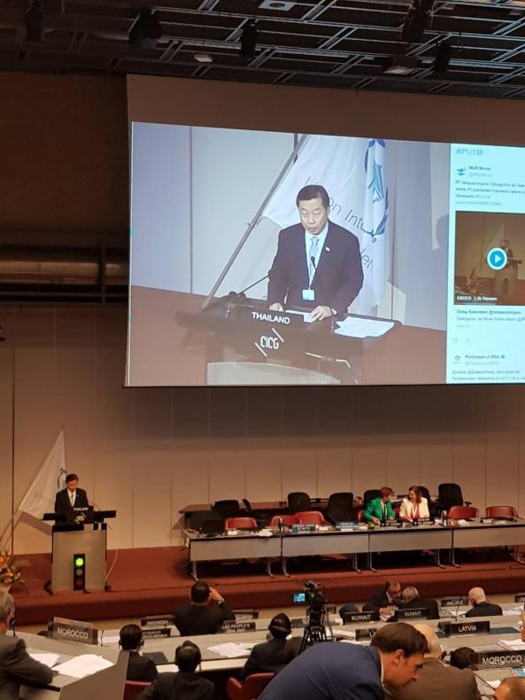 รองประธานสภานิติบัญญัติแห่งชาติ คนที่หนึ่ง เข้าร่วมการประชุมสมัชชาสหภาพรัฐสภา ครั้งที่ ๑๓๘ และ การประชุมอื่นๆ ที่เกี่ยวข้อง เป็นวันที่สอง ที่ประชุมได้มีการอภิปรายในหัวข้อ "ผลสืบเนื่องจากกรณีสหรัฐอเมริกาประกาศรับรองนครเยรูซาเล็มเป็นเมืองหลวงของ