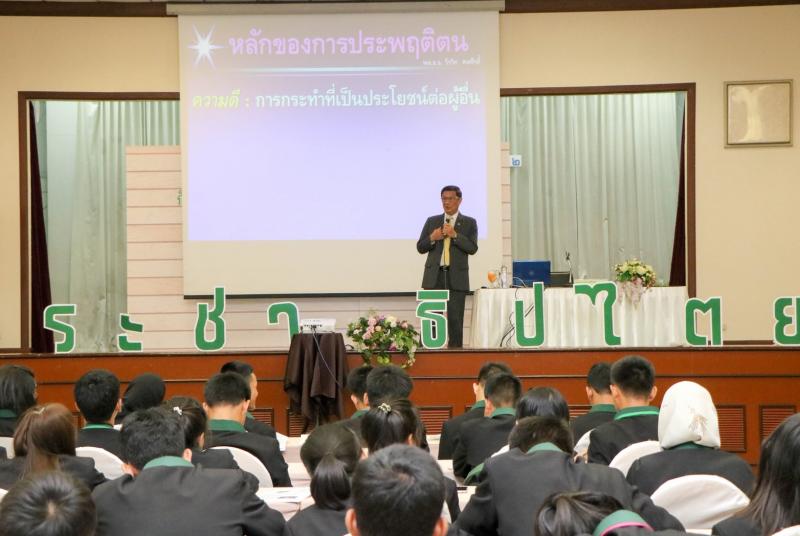 เกี่ยวกับคุณธรรมและจริยธรรมสำหรับเด็กและเยาวชน นักการเมือง รวมถึงมาตรฐานทางจริยธรรมของผู้ดำรงตำแหน่งทางการเมือง กลไกใหม่ในรัฐธรรมนูญ ๒๕๖๐ เพื่อให้เยาวชนเข้าใจและมีจิตสำนึกในเรื่องคุณธรรมและจริยธรรมสามารถดำรงชีวิตอยู่ในสังคมได้อย่างมีความสุโดยมี นางจงเดือน สุทธิรัตน์ ผู้อำนวยการสำนักประชาสัมพันธ์ มอบของที่ระลึก