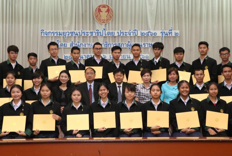 รุ่นที่ ๒/๒๕๖๑ และมอบเกียรติบัตรพร้อมเข็มยุวชนประชาธิปไตย ให้แก่ผู้ผ่านการอบรมค่ายยุวชนประชาธิปไตย