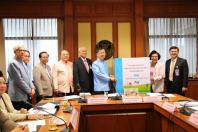 เลขาธิการสภาผู้แทนราษฎร พร้อมด้วยนางจงเดือน สุทธิรัตน์ ผู้อำนวยการสำนักประชาสัมพันธ์ รับมอบและสำนักงานเลขาธิการวุฒิสภา