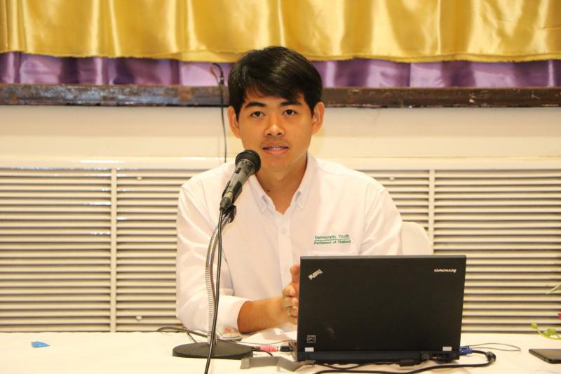 นายธนพัฒน์ บุญประกอบ ประธานยุวชนประชาธิปไตยภาคกลาง และสรุปผลการดำเนินงานของเครือข่าย