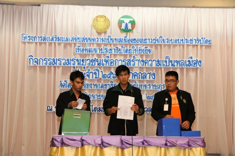 กิจกรรมการเลือกตั้งประธานยุวชนประชาธิปไตย ประจำปี ๒๕๖๒ ในโครงการส่งเสริมและสนับสนุนความเป็นพลเมืองของเยาวชนในระบอบประชาธิปไตยเพื่อพัฒนาประชาธิปไตยให้ยั่งยืน กิจกรรมรวมรุ่นยุวชนเพื่อการสร้างความเป็นพลเมือง ประจำปี ๒๕๖๑ (ภาคกลาง)