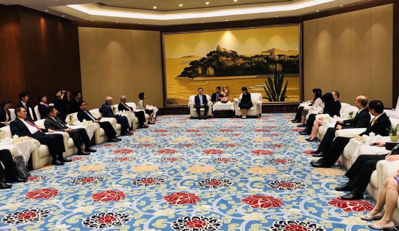รองประธานสภานิติบัญญัติแห่งชาติ คนที่หนึ่ง นำคณะสมาชิกสภานิติบัญญัติแห่งชาติเข้าแลกเปลี่ยนความคิดเห็นกับผู้แทนอธิบดีสำนักงานกิจการจีนโพ้นทะเล