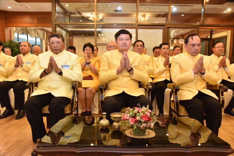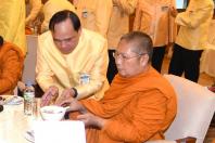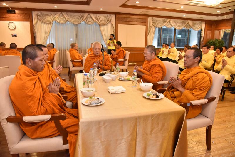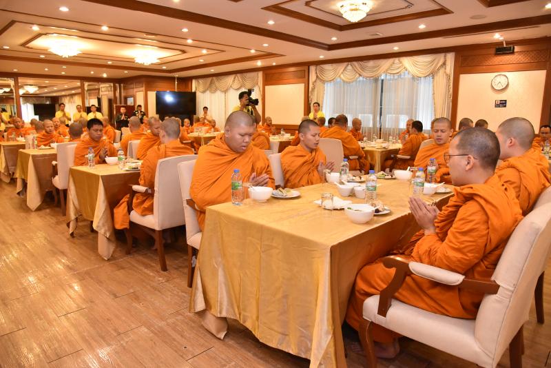 ถวายภัตตาหารเช้าร่วมกับสมาชิกสภานิติบัญญัติแห่งชาติ ซึ่งเป็นส่วนหนึ่งของกิจกรรมทำบุญตักบาตร