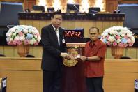 จากนั้น ศาสตราจารย์พิเศษพรเพชร วิชิตชลชัย ประธานสภานิติบัญญัติแห่งชาติ ให้เกียรติมอบเข็ม