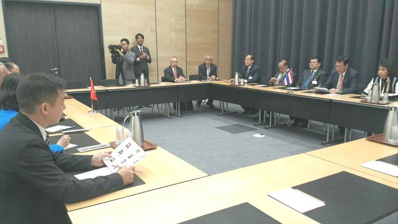 วันอังคารที่ ๑๖ ตุลาคม ๒๕๖๑ เวลา ๑๐.๐๐ นาฬิกา ณ ห้องประชุม Montreux อาคาร CCV Annexe Building ศูนย์การประชุมนานาชาติ CICG คณะผู้แทนสภานิติบัญญัติแห่งชาตินำโดย ศาสตราจารย์พิเศษพรเพชร วิชิตชลชัย ประธานสภานิติบัญญัติแห่งชาติ เข้าพบปะหารือกับคณะผู้แทนสภาแห่งชาติเวียดนาม นำโดยนาย Oung Chu Luu รองประธานสภาแห่งชาติ โดยประธานสภานิติบัญญัติ แห่งชาติ ได้กล่าวแสดงความเสียใจในนามสภานิติบัญญัติแห่งชาติต่อคณะผู้แทนเวียดนาม ในกรณีการถึงแก่อสัญกรรมของนายเจิ่น ด่าย กวาง ประธานาธิบดีเวียดนาม และนายโด๋ เหมื่อย อดีตนายกรัฐมนตรี