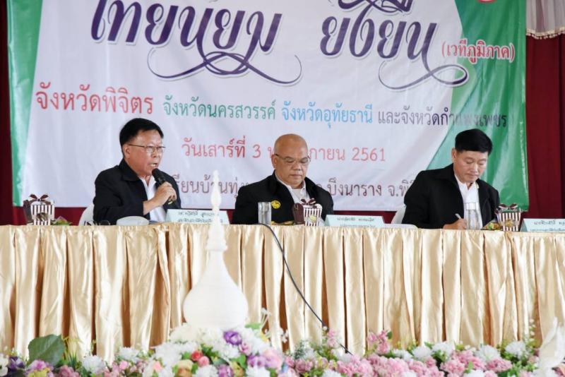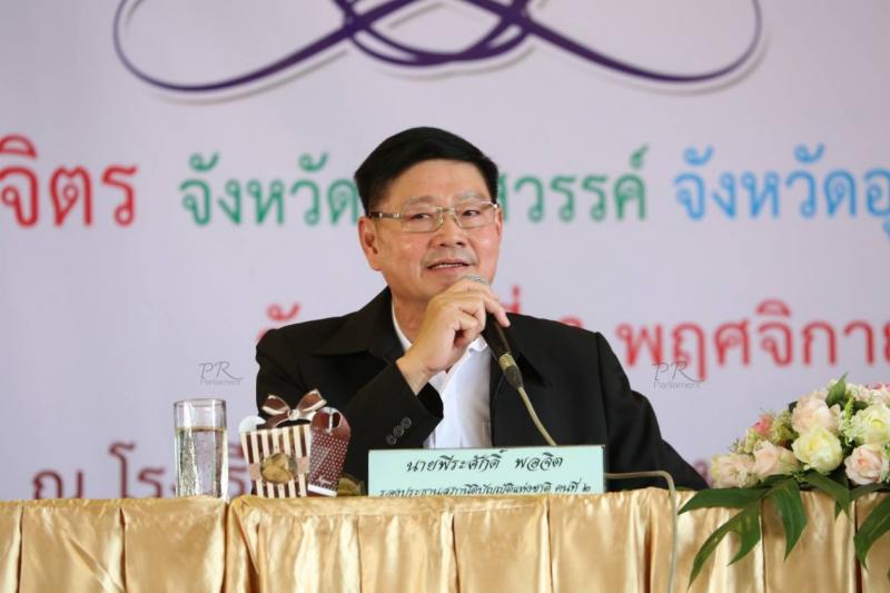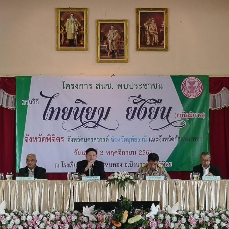 วันเสาร์ที่ ๓ พฤศจิกายน ๒๕๖๑ เวลา ๐๙.๓๐ นาฬิกา ณ หอประชุมโรงเรียน บ้านทุ่งพรหมทอง หมู่ที่ ๘ ตำบลบางลาย อำเภอบึงนาราง จังหวัดพิจิตร นายพีระศักดิ์ พอจิต รองประธานสภานิติบัญญัติ แห่งชาติ คนที่สอง ในฐานะประธานกรรมการ ดำเนินงานโครงการสมาชิกสภานิติบัญญัติแห่งชาติ พบประชาชน เป็นประธานในพิธีเปิดโครงการสมาชิก สภานิติบัญญัติแห่งชาติ พบประชาชนตามวิถีไทยนิยมยั่งยืน จังหวัดพิจิตร จังหวัดกำแพงเพชร จังหวัดนครสวรรค์ และจังหวัดอุทัยธานี โดยมีสมาชิกสภานิติบัญญัติแห่งชาติ นายฉัตรชัย พรหมเลิศ ปลัดกระทรวงมหาดไทย นายสมหวัง พ่วงบางโพ รองอธิบดีกรมการพัฒนาชุมชน นายเชาวลิตร แสงอุทัย ผู้ว่าราชการจังหวัดกำแพงเพชร นายณรงค์ รักร้อย ผู้ว่าราชการจังหวัดอุทัยธานี และนายอรรถพร สิงหวิชัย ผู้ว่าราชการจังหวัดนครสวรรค์ นายพงศ์นคร โภชากรณ์ ผู้อำนวยการส่วนวิเคราะห์เศรษฐกิจมหภาค ร่วมในพิธีเปิดในโอกาสนี้ นายวรพันธุ์ สุวัณณุสส์ ผู้ว่าราชการจังหวัดพิจิตร ให้การต้อนรับและกล่าวรายงาน ทั้งนี้ โครงการดังกล่าว มีวัตถุประสงค์ เพื่อเผยแพร่บทบาทหน้าที่และอำนาจของสภานิติบัญญัติแห่งชาติ อันจะนำไปสู่ความรู้ความเข้าใจและความร่วมมือในการดำเนินงานด้านนิติบัญญัติต่อไป โดยได้เปิดโอกาสให้ประชาชนในพื้นที่ประกอบด้วย ทีมขับเคลื่อนโครงการ ไทยนิยม ยั่งยืน ผู้นำชุมชน ผู้นำท้องถิ่น และประชาชน จำนวน ๖๐๐ คน ร่วมรับฟังปัญหา และเสนอแนะแนวทางการแก้ปัญหาเพื่อให้ประชาชน มีส่วนร่วมกับการดำเนินงานของสภานิติบัญญัติแห่งชาติ