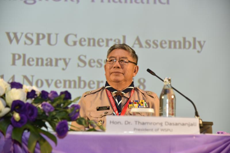รัฐมนตรีว่าการกระทรวงศึกษาธิการ ประธานคณะกรรมการบริหารลูกเสือแห่งชาติ กล่าวสุนทรพจน์ในหัวข้อ “ความร่วมมือระหว่างกิจการลูกเสือในประเทศไทยและลูกเสือโลก”