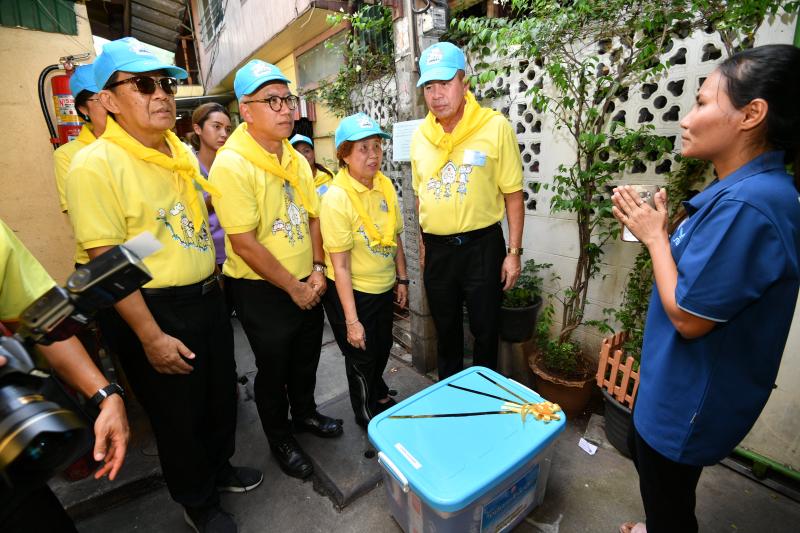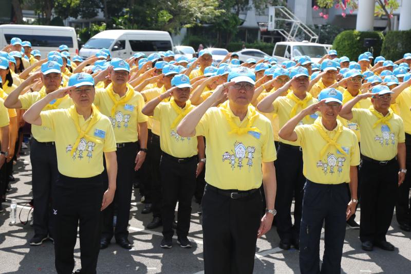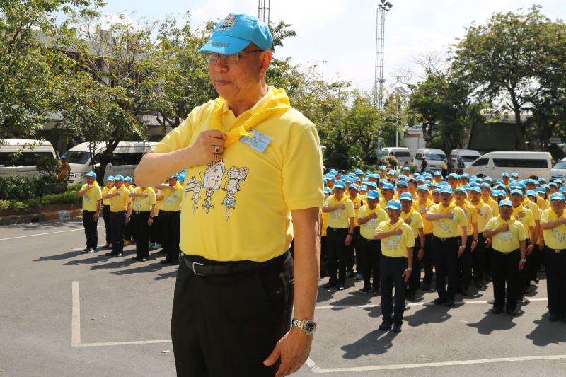 จากนั้น ประธานสภานิติบัญญัติแห่งชาติเปิดกรวยกระทง ดอกไม้ธูปเทียนแพ และนำคณะจิตอาสากล่าวคำปฏิญาณตน เราทำความดี ด้วยหัวใจ