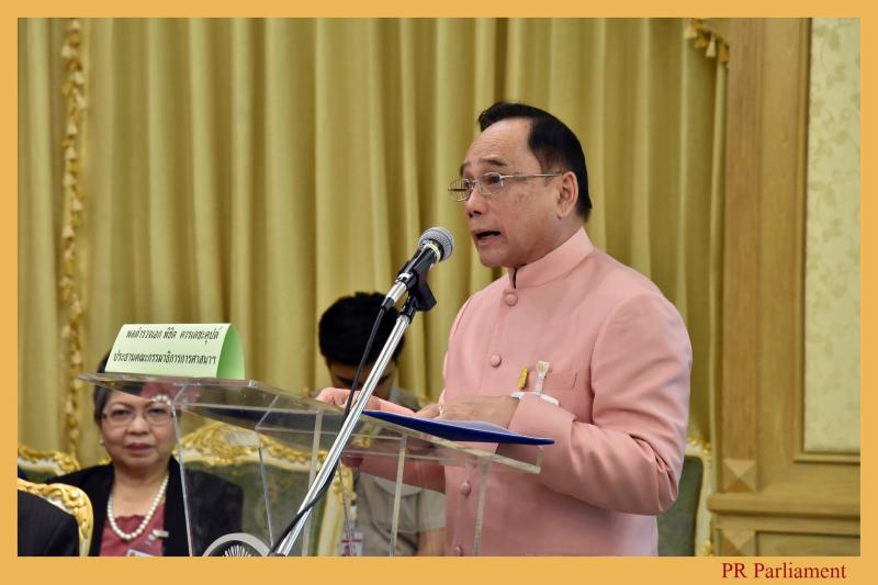 ศาสตราจารย์พิเศษพรเพชร วิชิตชลชัย ประธานสภานิติบัญญัติแห่งชาติ เข้าร่วมในพิธีลงนาม