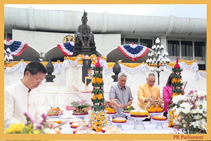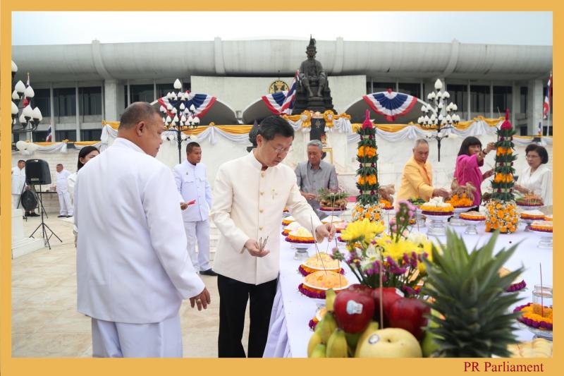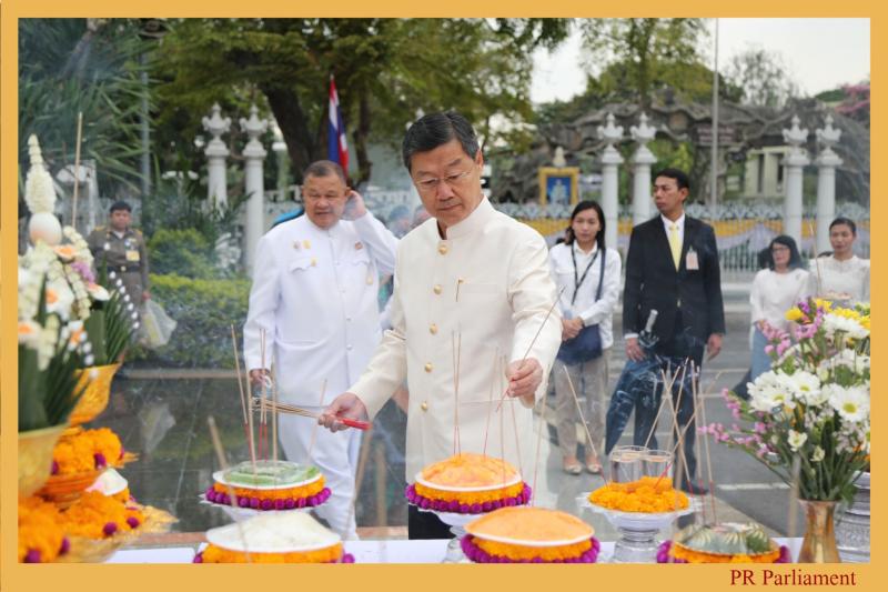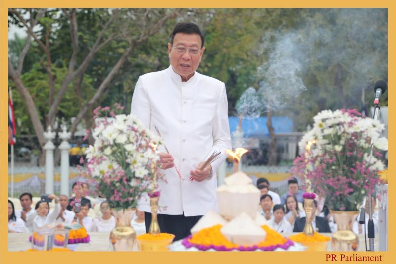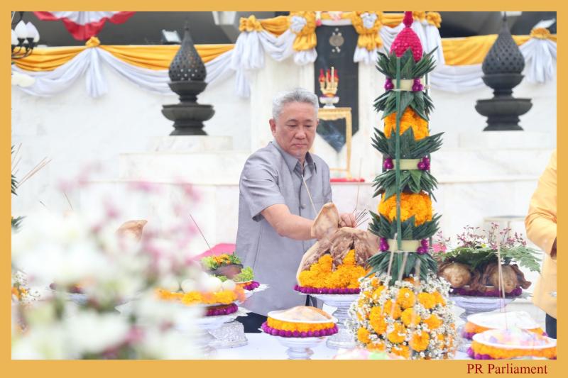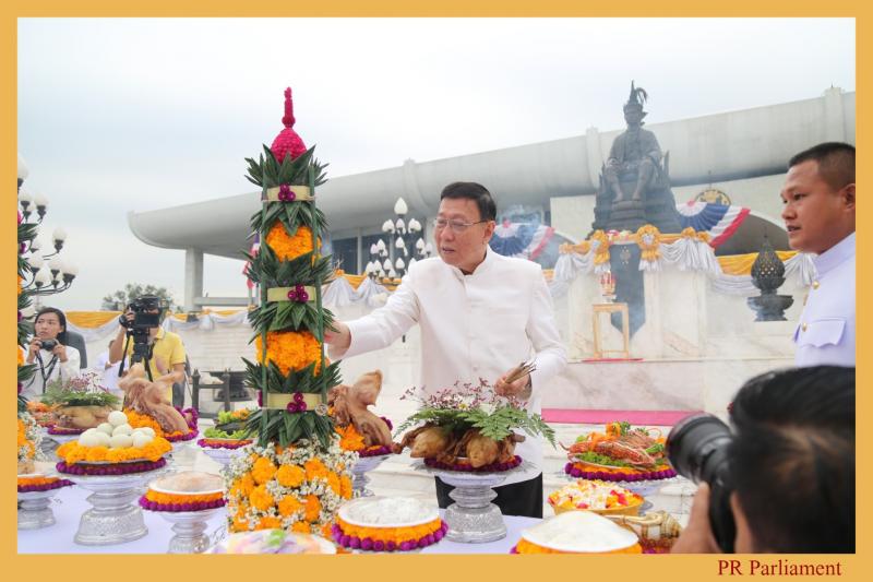 เจ้าอยู่หัว และปักธูปหางที่เครื่องบวงสรวง ในการนี้ นายสุรชัย เลี้ยงบุญเลิศชัย รองประธานสภานิติบัญญัติ