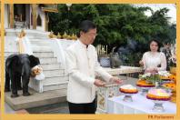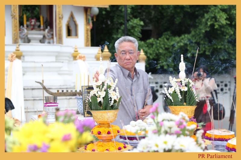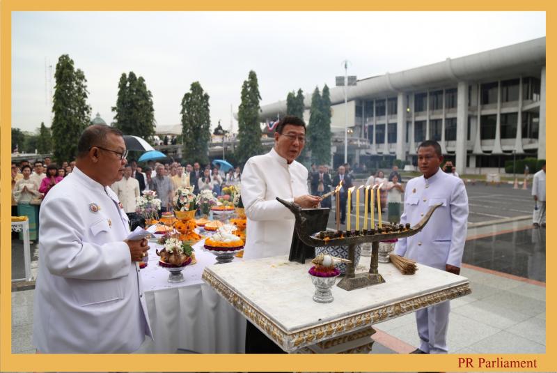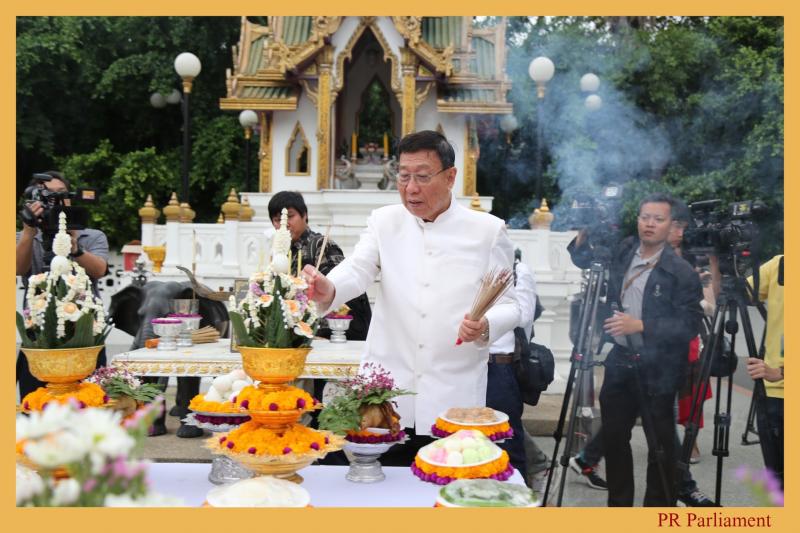 ต่อจากนั้น ประธานสภานิติบัญญัติแห่งชาติ จุดธูปเทียนสักการะพระสยามเทวาธิราช พระเสื้อเมือง