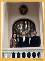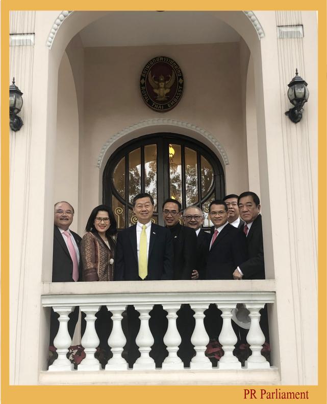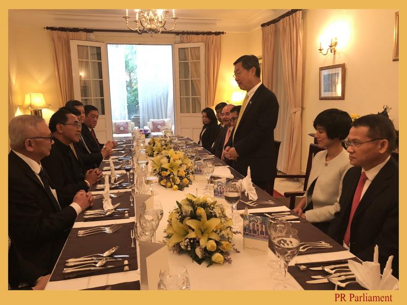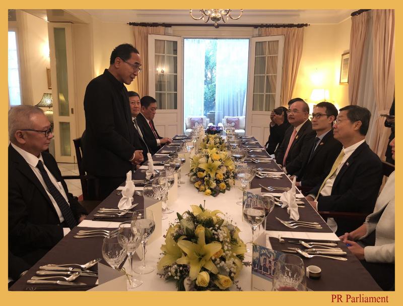 | วันอังคารที่ ๑๕ มกราคม ๒๕๖๒ เวลา ๑๑.๓๐ นาฬิกา ณ ทำเนียบเอกอัครราชทูตฯ นายธานี แสงรัตน์ เอกอัครราชทูต ณ กรุงฮานอย เป็นเจ้าภาพเลี้ยงอาหารกลางวัน เพื่อเป็นเกียรติแก่ นายสุรชัย เลี้ยงบุญเลิศชัย รองประธานสภานิติบัญญัติแห่งชาติ คนที่หนึ่ง และคณะผู้แทนกลุ่มมิตรภาพ สมาชิกรัฐสภาไทย เวียดนาม และได้มีการหารือเกี่ยวกับกับความสัมพันธ์ไทย-เวียดนามซึ่งสถาปนา ความสัมพันธ์ทางการทูตกับเวียดนามตั้งแต่ปี ๒๕๑๙ ต่อมามีการเปิดสถานเอกอัครราชทูต ณ กรุงฮานอย ปี ๒๕๒๑ และเปิดสถานกงสุลใหญ่ที่นครโฮจิมินห์ เมื่อปี พ.ศ. ๒๕๓๕ ซึ่งมีการพัฒนาความสัมพันธ์และ ความร่วมมือในด้านต่าง ๆ อย่างต่อเนื่องบนผลประโยชน์ร่วมกันในเชิง หุ้นส่วนทางยุทธศาสตร์ ซึ่งปัจจุบัน อยู่ในระดับที่ดีมาก โอกาสนี้ นายสุรชัย เลี้ยงบุญเลิศชัย รองประธานสภานิติบัญญัติแห่งชาติ คนที่หนึ่ง ได้ลงนาม ในสมุดเยี่ยมฯ โดยนายธานี แสงรัตน์ เอกอัครราชทูต ณ กรุงฮานอย ได้มอบของที่ระลึกแก่ รองประธาน สภานิติบัญญัติแห่งชาติ คนที่หนึ่ง และรองประธานสภานิติบัญญัติแห่งชาติ คนที่หนึ่ง ได้มอบของที่ระลึก แก่เอกอัครราชทูต ณ กรุงฮานอย และเจ้าหน้าที่ของสถานเอกอัครราชทูตเพื่อแสดงความขอบคุณ จากนั้น นายสุรชัย เลี้ยงบุญเลิศชัย รองประธานสภานิติบัญญัติแห่งชาติ คนที่หนึ่ง คณะผู้แทน กลุ่มมิตรภาพสมาชิกรัฐสภาไทย เวียดนาม พร้อมด้วยนายธานี แสงรัตน์ เอกอัครราชทูต ณ กรุงฮานอย และภริยา ถ่ายภาพร่วมกัน เป็นที่ระลึก