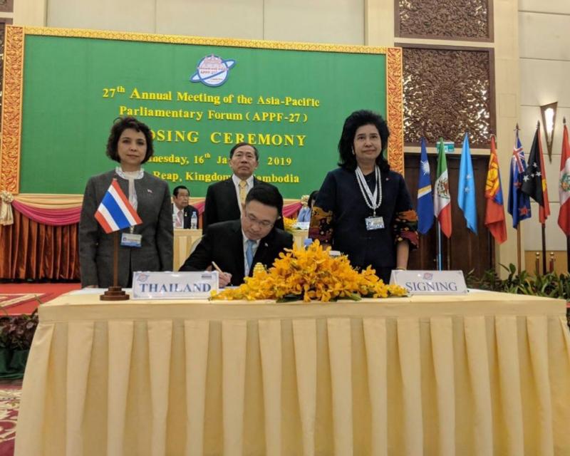 และแปซิฟิก (APPF) ครั้งที่ ๒๗ ได้กล่าวถ้อยแถลงในที่ประชุมเต็มคณะวาระที่ ๓ หัวข้อ การเสริมสร้างบทบาทรัฐสภาในการตอบสนองต่อการ เปลี่ยนแปลงสภาพภูมิอากาศโดยกล่าวถึงความสำคัญของปัญหาการ เปลี่ยนแปลงสภาพภูมิอากาศที่มีความซับซ้อนและเกี่ยวพันกับหลายมิติ