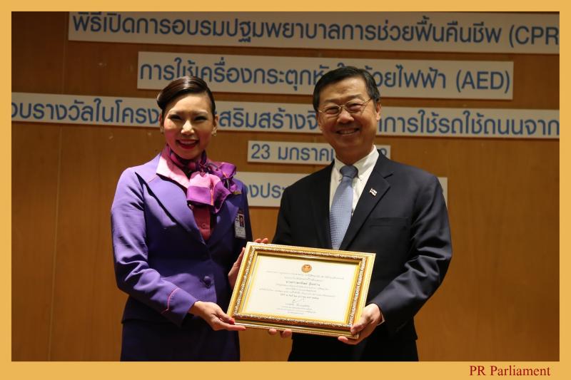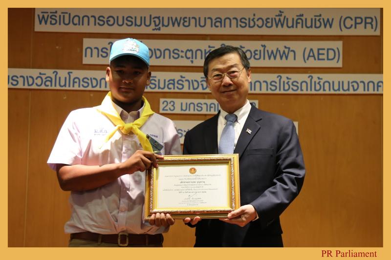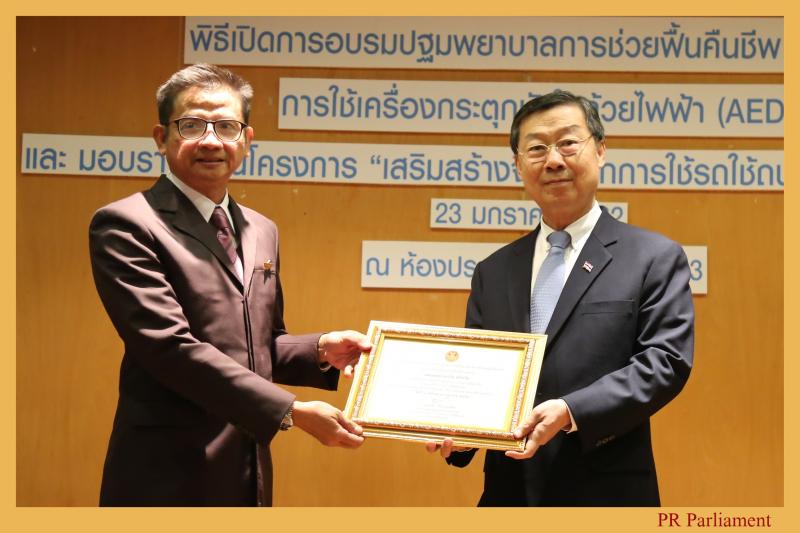ผู้ได้รับรางวัล และกล่าวเปิดการอบรมปฐมพยาบาลการช่วยฟื้นคืนชีพ (CPR) การใช้เครื่อง