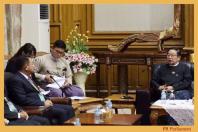 แห่งชาติ และประธานกลุ่มมิตรภาพสมาชิกรัฐสภาไทย-เมียนมา พร้อมคณะ ประชุมทวิภาคีกับนายเต็ง