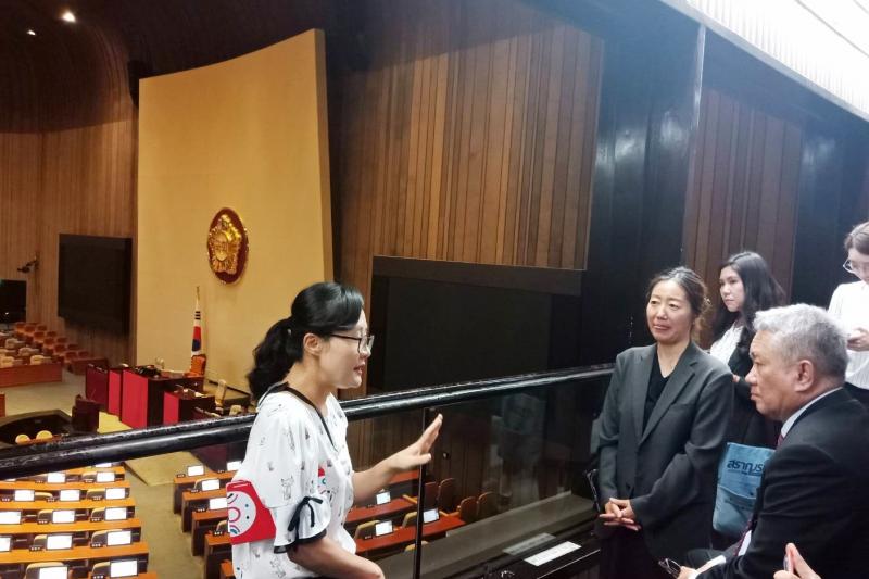 วันศุกร์ที่ ๑๖ สิงหาคม ๒๕๖๒ เวลา ๐๙.๓๐ นาฬิกา ณ รัฐสภาสาธารณรัฐเกาหลี นายสรศักดิ์ เพียรเวช เลขาธิการสภาผู้แทนราษฎร และคณะ เดินทางไปศึกษาดูงาน ตามโครงการแลกเปลี่ยนบุคลากร ณ สาธารณรัฐเกาหลี โดยเลขาธิการสภาผู้แทนราษฎร ได้เข้าเยี่ยมคารวะ นายฮัน คงซิก รองเลขาธิการรัฐสภาสาธารณรัฐเกาหลี จากนั้น เลขาธิการสภาผู้แทนราษฎรรับฟังการบรรยายสรุปภารกิจและหน้าที่ของรัฐสภา สาธารณรัฐเกาหลี และสำนักงานเลขาธิการรัฐสภา สาธารณรัฐ เกาหลี โดยได้มีการแลกเปลี่ยน ความคิดเห็นด้านกระบวนการนิติบัญญัติ และรับฟังการบรรยายสรุปการนำระบบเทคโนโลยี สารสนเทศมาใช้ในการประชุมรัฐสภาและได้เยี่ยมชมห้องประชุมรัฐสภา ตลอดจนแลกเปลี่ยน ความคิดเห็นเกี่ยวกับการนำเทคโนโลยีมาใช้ในการประชุมรัฐสภา จากนั้น ได้เยี่ยมชม อาคารรัฐสภาสาธารณรัฐเกาหลี เครดิต : ภาพและข่าวโดย สำนักพัฒนาบุคลากร สำนักงานเลขาธิการสภาผู้แทนราษฎร |