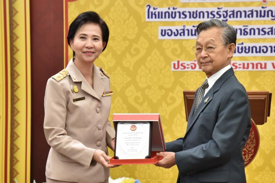 จากนั้น น.ส.สุภาสินี ขมะสุนทร รองเลขาธิการสภาผู้แทนราษฎร เป็นตัวแทนของผู้เกษียณอายุราชการ