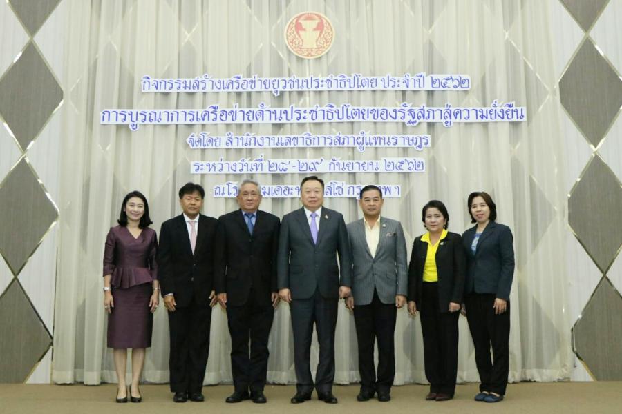 รองประธานสภาผู้แทนราษฎร คนที่หนึ่ง เป็นประธานเปิดกิจกรรมสร้างเครือข่ายยุวชนประชาธิปไตย ประจำปี ๒๕๖๒ “การบูรณาการเครือข่ายด้านประชาธิปไตยของรัฐสภาสู่ความยั่งยืน”