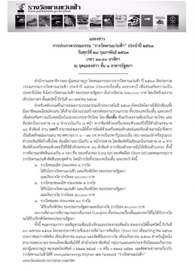 ร่วมแถลงข่าวการประกวดวรรณกรรมรางวัลพานแว่นฟ้า ประจำปี ๒๕๖๓