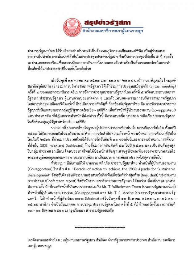 • ๗๐ ปี แห่งสมาชิกภาพของรัฐสภาไทยในสหภาพรัฐสภา    download_icon