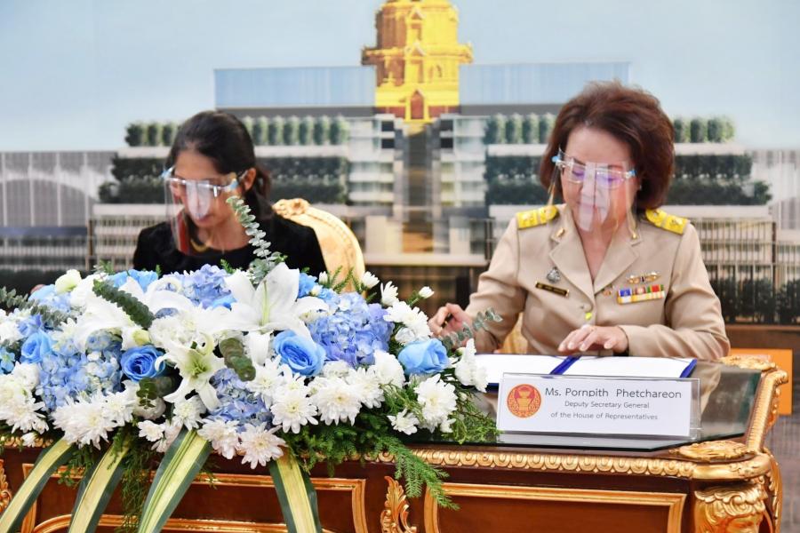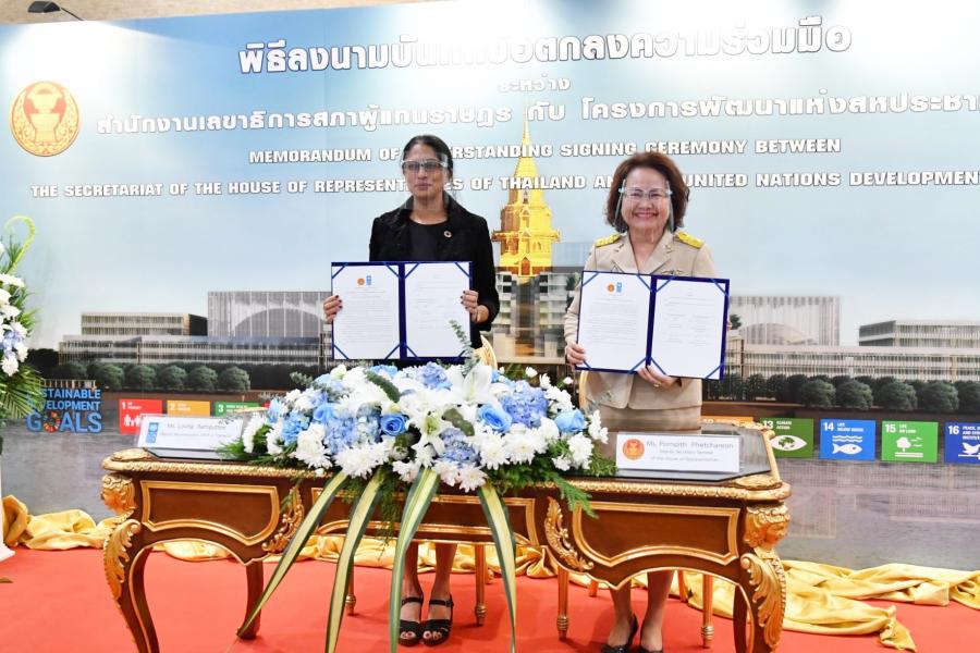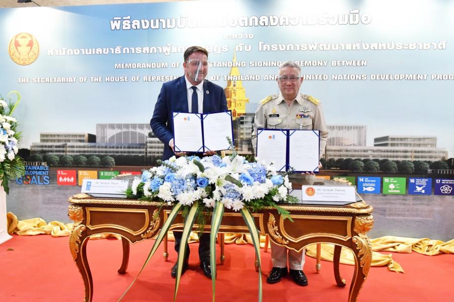 เลขาธิการสภาผู้แทนราษฎร และนายเรอโน เมแยร์ ผู้แทนโครงการพัฒนาแห่งสหประชาชาติ (UNDP) ประจำประเทศไทย ร่วมลงนามบันทึกข้อตกลงความร่วมมือ (MOU) ระหว่างสำนักงานเลขาธิการสภาผู้แทนราษฎร กับโครงการพัฒนาแห่งสหประชาชาติ (UNDP)