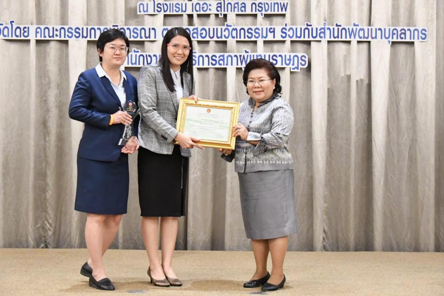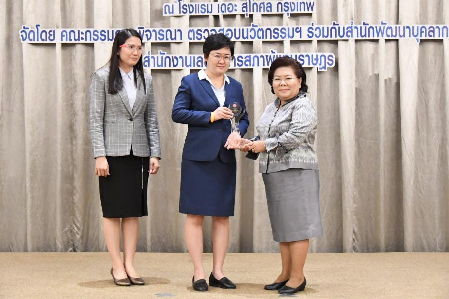 สำหรับในช่วงบ่าย นางอรวรรณ พันธุ์เปรื่อง ที่ปรึกษาด้านระบบงานนิติบัญญัติ ในฐานะประธาน พิจารณาตรวจสอบนวัตกรรมของสำนักงานเลขาธิการสภาผู้แทนราษฎรมอบรางวัลนวัตกรรม ดีเด่นของสำนักงานเลขาธิการสภาผู้แทนราษฎร ประจำปีงบประมาณ พ.ศ. ๒๕๖๓ ประกอบด้วย รางวัลนวัตกรรม ระดับดีเด่น จำนวน ๓ รางวัล ได้แก่ ๑. นวัตกรรมเรื่อง การจัดทำเอกสารประกอบการประชุมสภาผู้แทนราษฎรและการประชุมร่วมกัน ของรัฐสภาในรูปแบบ E -book เสนอโดย กลุ่มงานระเบียบวาระ สำนักการประชุม ๒. นวัตกรรมเรื่อง กิจกรรมการพัฒนาความรู้ด้านนวัตกรรมเพื่อการพัฒนาประชาธิปไตย ผ่านทางสี่อออนไลน์ เสนอโดย กลุ่มงานเผยแพร่ประชาธิปไตยและกิจกรรมสภาผู้แทนราษฎร สำนักประชาสัมพันธ์ ๓. นวัตกรรมเรื่อง การประยุกต์ใช้ Google Data Studio ในการนำเสนอข้อมูลงบประมาณ รายจ่ายประจำ เสนอโดย สำนักงบประมาณของรัฐสภา รางวัลนวัตกรรม ระดับดีมาก จำนวน ๕ รางวัล ได้แก่ ๑. นวัตกรรมเรื่อง บริการสารสนเทศในคลังสารสนเทศของสถาบันนิติบัญญัติผ่านแฟนเพจ บนเฟซบุ๊ก เสนอโดย กลุ่มงานพัฒนาทรัพยากรสารสนเทศ สำนักวิชาการ ๒. นวัตกรรมเรื่อง คลังคำศัพท์รัฐสภาภาษไทย ภาษาอังกฤษ สำหรับการสืบค้นทางอินเทอร์เน็ต เสนอโดย คณะทำงานการจัดการความรู้ สำนักภาษาต่างประเทศ ๓. นวัตกรรมเรื่อง ระบบลงเวลาปฏิบัติราชการ และระบบมอบหมายงานนอกสถานที่ตั้งของ สำนักงานเลขาธิการสภาผู้แทนราษฎร เสนอโดย กลุ่มงานวิทยาการคอมพิวเตอร์ สำนักสารสนเทศ ๔. นวัตกรรมเรื่อง หลักสูตร E- learning เพื่อส่งเสริมความรู้ด้านระบบงานนิติบัญญัติผ่าน สื่ออิเล็กทรอนิกส์หลักสูตรกระบวนการนิติบัญญัติ เรื่อง กระบวนการตรากฎหมายตามขั้นตอน เสนอโดย กลุ่มงานพัฒนาและฝึกอบรม สำนักพัฒนาบุคลากร ๕. นวัตกรรมเรื่อง ระบบรายงานความต้องการพัฒนาและฝึกอบรม (Training and Development Need Analysis Report System) เสนอโดย คณะทำงานจัดทำระบบรายงานผลทางอิเล็กทรอนิกส์ สำนักพัฒนาบุคลากร