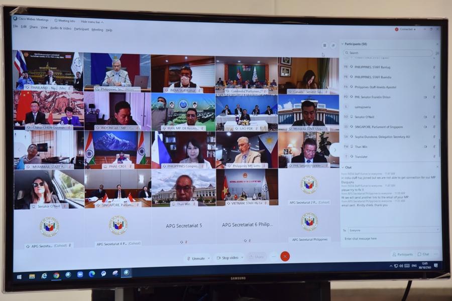 นายเกียรติ สิทธีอมร และ น.ส.สรัสนันท์ อรรณนพพร สมาชิกสภาผู้แทนราษฎร พร้อมด้วยนางพิกุลแก้ว ไกรฤกษ์ สมาชิกวุฒิสภา ในฐานะผู้แทนรัฐสภาไทย เข้าร่วมการประชุมกลุ่มภูมิรัฐศาสตร์เอเชีย - แปซิฟิก (Asia-Pacific Geopolitical Group (APG) Meeting) ผ่านระบบการประชุมทางไกล Cisco Webex