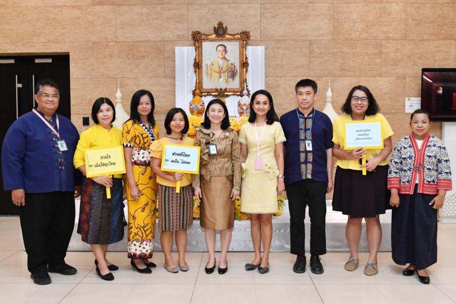| วันศุกร์ที่ ๔ ธันวาคม ๒๕๖๓ เวลา ๑๕.๓๐ นาฬิกา ณ บริเวณห้องโถง อาคารรัฐสภา เนื่องในวันคล้ายวันพระบรมราชสมภพ พระบาทสมเด็จ พระบรมชนกาธิเบศร มหาภูมิพลอดุลยเดชมหาราช บรมนาถบพิตร วันชาติ และ วันพ่อแห่งชาติ ๕ ธันวาคม ๒๕๖๓ นางจงเดือน สุทธิรัตน์ ผู้อำนวยการ สำนักประชาสัมพันธ์ นำผู้บังคับบัญชา กลุ่มงาน ข้าราชการ พนักงานราชการ และลูกจ้างของสำนักประชาสัมพันธ์ ร่วมแสดงออกถึงความจงรักภักดีและ น้อมรำลึกในพระมหากรุณาธิคุณของพระบาทสมเด็จพระบรมชนกาธิเบศร มหาภูมิพลอดุลยเดชมหาราช บรมนาถบพิตร โดยได้รณรงค์ส่งเสริมและ สนับสนุนให้บุคลากรของสำนักประชาสัมพันธ์ แต่งกายด้วยผ้าไทยหรือ ผ้าพื้นเมืองในทุกวันศุกร์ เพื่อให้เกิดความตระหนัก รับรู้คุณค่า และความสำคัญ ของผ้าไทย อีกทั้งเพื่อสนองพระราชดำริของสมเด็จพระนางเจ้าฯ พระบรมราชินีนาถ ที่ว่า "ผ้าไทย เป็นงานหัตถกรรมที่งดงาม มีคุณค่า บ่งบอก ถึงเอกลักษณ์ความเป็นไทย สามารถช่วยเพิ่มรายได้ให้แก่ผู้ทอผ้าได้เป็นอย่างดี และสืบสานผ้าไทยอันเป็นมรดกภูมิปัญญาของไทยให้แพร่หลายต่อไป