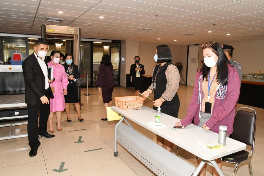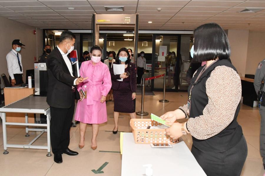 จากนั้น นางพรพิศ เพชรเจริญ เลขาธิการสภาผู้แทนราษฎร ได้มอบหมายให้ น.ส.โสมอุษา บูรณะเหตุ  รองเลขาธิการสภาผู้แทนราษฎร ตรวจความเรียบร้อยในการเตรียมความพร้อมสำหรับการรองรับบุคคลต่าง ๆ ในการประชุมสภาผู้แทนราษฎร ที่จะมีขึ้นในวันพรุ่งนี้ (๒๐ ม.ค. ๖๔) และการปฏิบัติตามมาตรการการเข้า – ออก อาคารรัฐสภาในช่วงการป้องกันการแพร่ระบาดของโรคติดเชื้อไวรัสโคโรนา ๒๐๑๙ ตามจุดต่าง ๆ ประกอบด้วย  จุดคัดกรองบุคคลเข้า – ออก อาคารรัฐสภา บริเวณชั้นบี ๑ และชั้น ๑ ห้องอาหารสมาชิกสภาผู้แทนราษฎร ชั้น ๒ ตลอดจนห้องอาหารข้าราชการ ชั้น ๑ เพื่อเป็นการป้องกันการแพร่ระบาดของเชื้อไวรัสโคโรนา ๒๐๑๙ และเป็นไปตามมาตรการการเข้า – ออก อาคารรัฐสภาฯ ให้เป็นไปอย่างเคร่งครัด