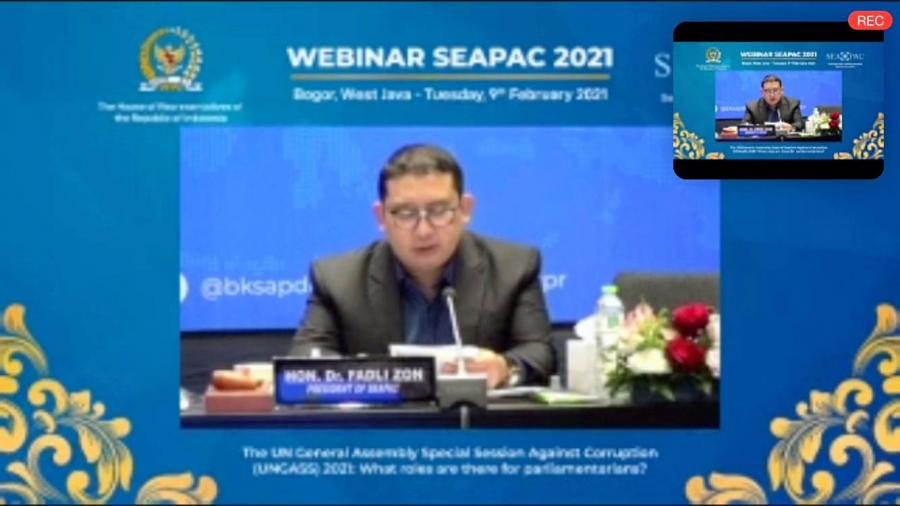 ประชุมสัมมนา Webinar ในหัวข้อ การประชุมสมัชชาใหญ่สหประชาชาติสมัยพิเศษว่าด้วยการต่อต้านการทุจริต ประจำปี 2564 : บทบาทของสมาชิกรัฐสภา (The UN General Assembly Special Session against corruption (UNGASS) 2021 : What role are there for parliamentarians?)