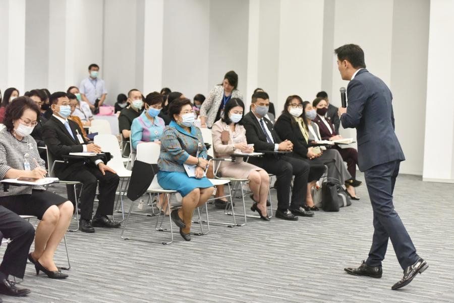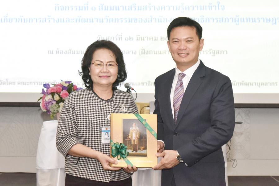 ในการนี้ นางพรพิศ เพชรเจริญ เลขาธิการสภาผู้แทนราษฎร มอบของที่ระลึกแก่ ศ.ดร.สุชัชวีร์ สุวรรณสวัสดิ์ อธิการบดี สถาบันเทคโนโลยีพระจอมเกล้าเจ้าคุณทหารลาดกระบัง ที่ให้เกียรติมาเป็นวิทยากร เพื่อแสดงความขอบคุณ