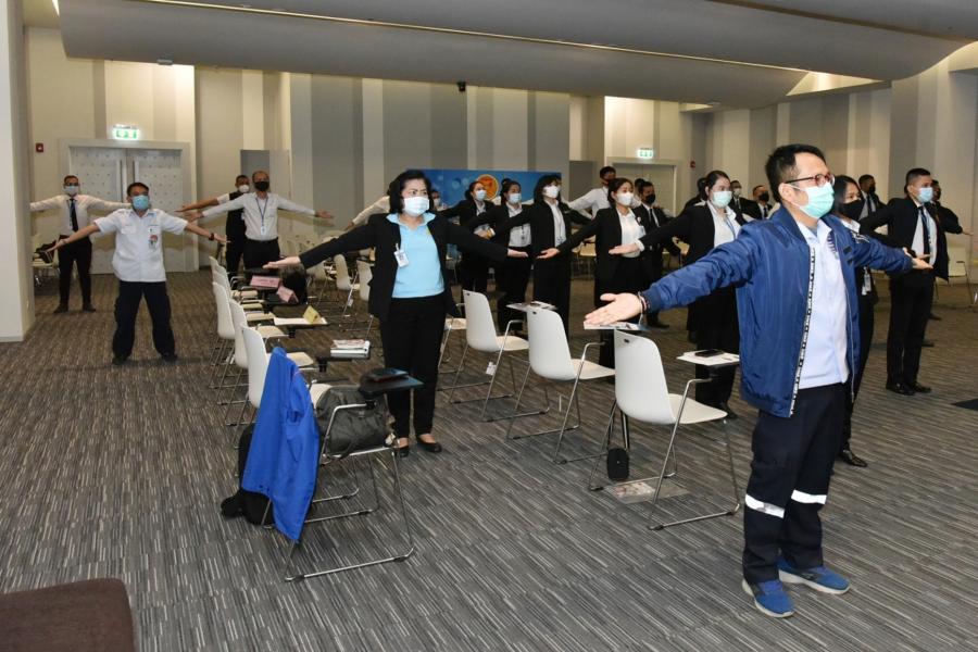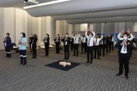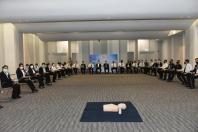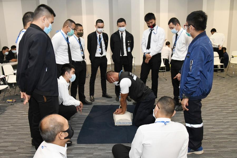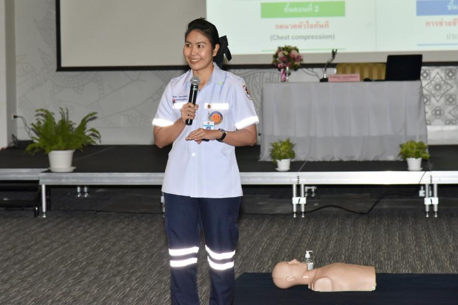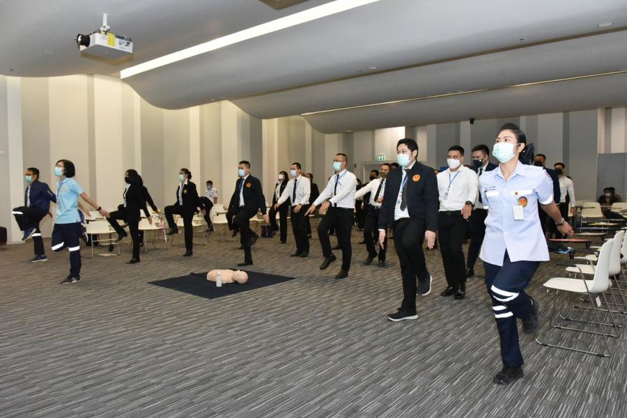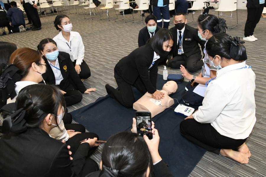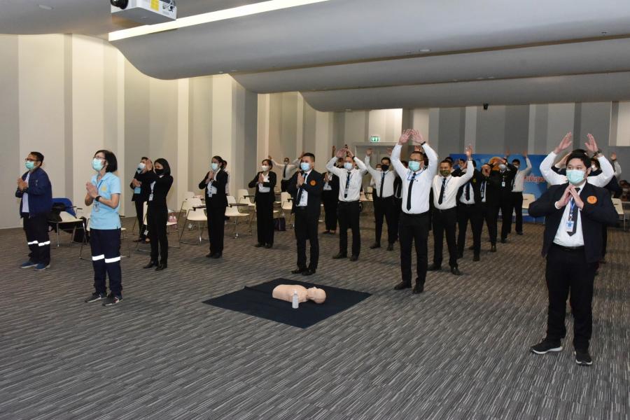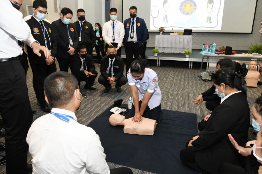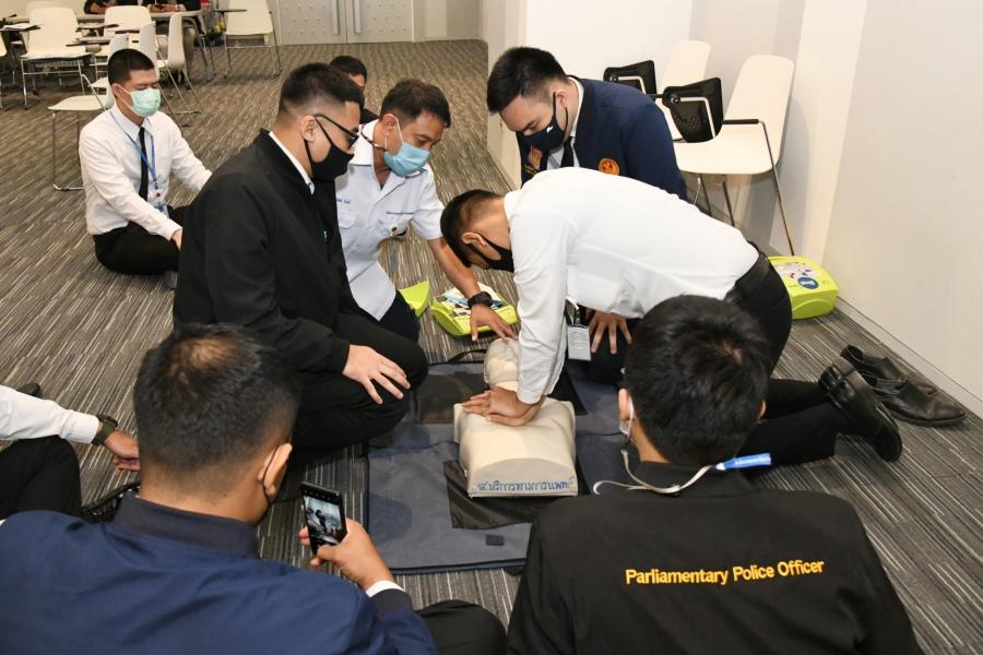 จากนั้น ผู้เข้ารับการอบรมได้ร่วมกิจกรรมยืดเหยียดทางกายเพื่อความกระฉับกระเฉงในการทำงาน รวมทั้งรับฟังการบรรยายให้ความรู้และฝึกปฏิบัติ โดยวิทยากรจากสำนักบริการทางการแพทย์ประจำรัฐสภา ตลอดจนฝึกปฏิบัติ CPR และการใช้เครื่องฟื้นคืนคลื่นหัวใจด้วยไฟฟ้าแบบอัตโนมัติ (AED) สำหรับกิจกรรมดังกล่าว สำนักบริการทางการแพทย์ประจำรัฐสภา ร่วมกับสำนักงานกองทุนสนับสนุนการสร้างเสริมสุขภาพ (สสส.) จัดขึ้นโดยมีวัตถุประสงค์เพื่อให้ผู้เข้าอบรม มีความรู้ ความเข้าใจ และตระหนักถึงความสำคัญของการช่วยชีวิตขั้นพื้นฐาน รวมทั้งทราบขั้นตอนในการปฏิบัติ และสามารถปฏิบัติการช่วยชีวิตขั้นพื้นฐานได้อย่างถูกต้อง สามารถใช้เครื่อง AED ในการช่วยเหลือผู้ที่ได้รับบาดเจ็บหรือเจ็บป่วยให้พ้นจากอันตรายเพื่อลดความพิการก่อนนำส่งโรงพยาบาล และลดความรุนแรงของการบาดเจ็บที่เกิดขึ้นได้ โดยกำหนดจัดกิจกรรม จำนวน 4 รุ่น รุ่นละ 30 คน รวมจำนวนทั้งสิ้น 120 คน ซึ่งมีกลุ่มเป้าหมาย ได้แก่ เจ้าหน้าที่ตำรวจรัฐสภา สำนักงานเลขาธิการสภาผู้แทนราษฎร ข้าราชการ พนักงานราชการ ลูกจ้างสังกัดสำนักงานเลขาธิการวุฒิสภา และผู้ติดตามสมาชิกรัฐสภา