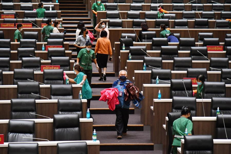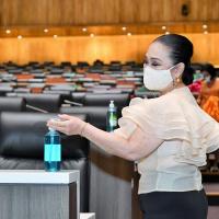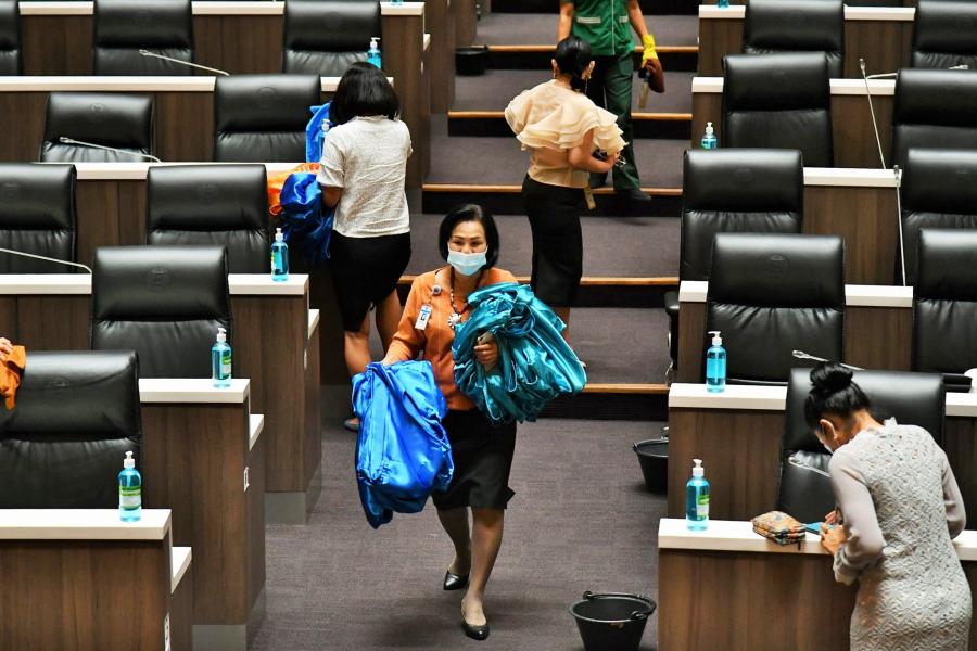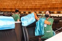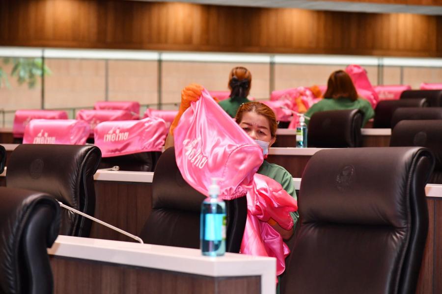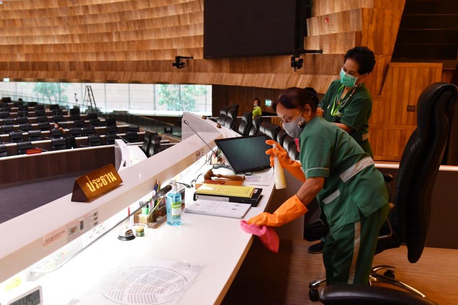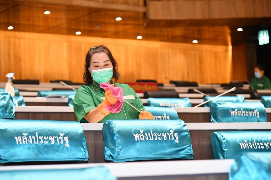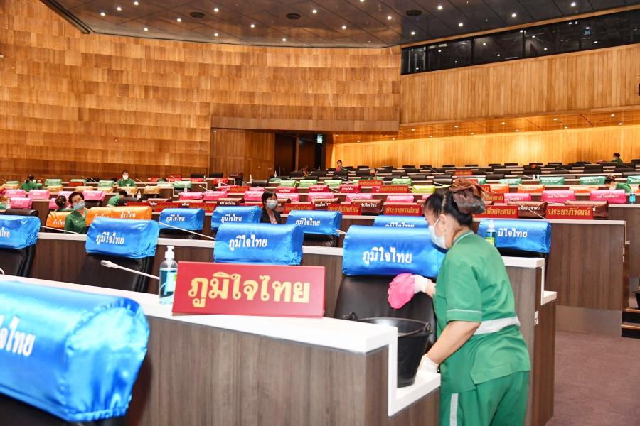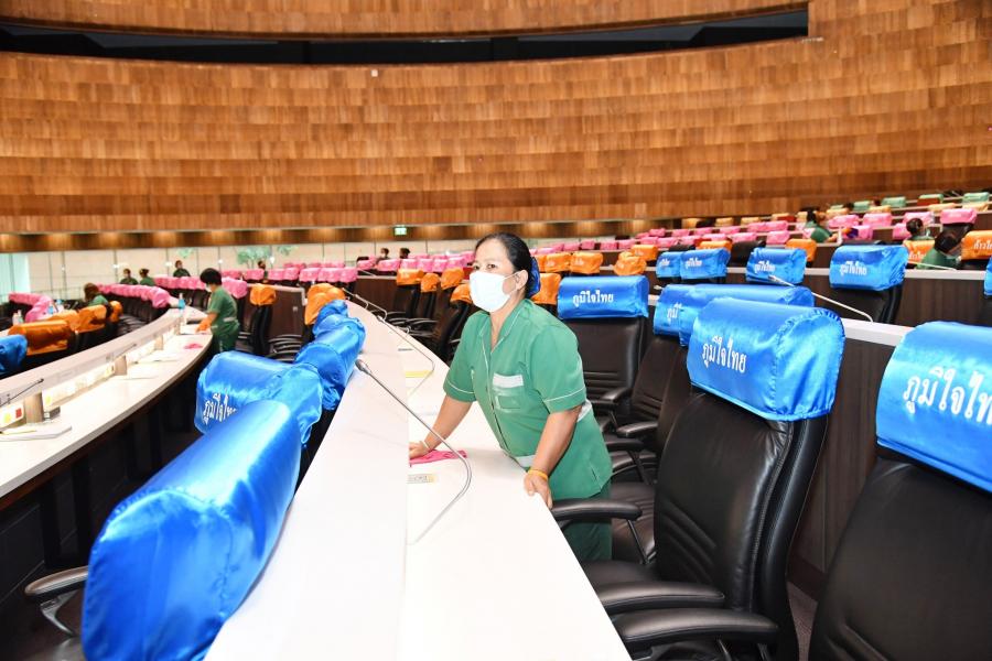 วันศุกร์ที่ 9 เมษายน 2564 เวลา 14.30 นาฬิกา ณ ห้องประชุมสภาผู้แทนราษฎร ชั้น 2 อาคารรัฐสภา น.ส.โสมอุษา บูรณะเหตุ รองเลขาธิการสภาผู้แทนราษฎร พร้อมด้วยนางสินี ส้มมี ผู้อำนวยการสำนักการประชุม  และเจ้าหน้าที่ทำความสะอาด ร่วมกันทำความสะอาด Big Cleaning ภายในห้องประชุมสภาผู้แทนราษฎร โดยใช้น้ำยาฆ่าเชื้อโรค เช็ดทำความสะอาดบริเวณโต๊ะ ที่นั่ง ไมโครโฟน และฉีดพ่นน้ำยาฆ่าเชื้อโรคลงบนพื้นห้องประชุม รวมทั้งถอดปลอกคลุมเก้าอี้ที่นั่งของสมาชิกฯ ไปทำความสะอาดเพื่อเป็นการป้องกันการแพร่ระบาดของเชื้อไวรัสโคโรนา 2019 (โควิด-19) และดำเนินการตามมาตรการป้องกันการแพร่ระบาดฯ ตลอดจนเป็นการเตรียมความพร้อมเพื่อรองรับการเปิดสมัยประชุมในเดือน พ.ค. 64