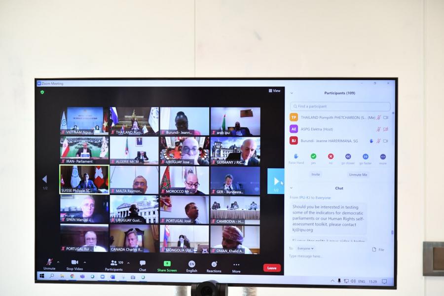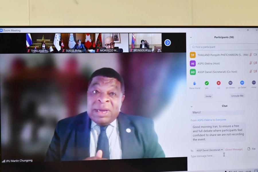 โดยร่วมอภิปราย ในหัวข้อ “บทบาทและองค์กรของรัฐสภาในช่วงการแพร่ระบาดของโรคโควิด-19” (The role and organization of Parliaments during a time of pandemic) มีใจความสำคัญดังนี้