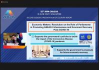 จากนั้น ที่ประชุมจึงได้แนะนำสมาชิกรัฐสภาที่เข้าร่วมการประชุมฯ ได้แก่ บรูไนดารุสซาลาม กัมพูชา อินโดนีเซีย ลาว มาเลเซีย ฟิลิปปินส์ สิงคโปร์ ไทยและเวียดนามโดยมีเมียนมาเป็นประเทศผู้สังเกตการณ์ นอกจากนี้ ยังมีเลขาธิการ AIPA และผู้แทนจากสำนักงานเลขาธิการอาเซียนเข้าร่วมการประชุมด้วย ในโอกาสนี้ที่ประชุมได้หารือภายใต้หัวข้อ การเสริมสร้างความคล่องตัวของห่วงโซ่อุปทานและการส่งเสริมการเชื่อมโยงทางการค้า และได้รายงานผลการปฏิบัติตามข้อมติของการประชุมใหญ่สมัชชารัฐสภาอาเซียน ครั้งที่ 41