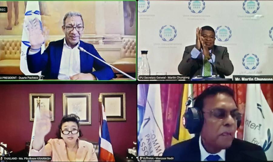 ต่อมา ที่ประชุมฯ ยังได้พิจารณาเรื่ององค์ประกอบของคณะผู้แทนฯ ว่าควรมีการยืดหยุ่น เนื่องจากมีหลายประเทศที่ไม่สามารถลงทะเบียนคณะผู้แทนฯ ที่มีจำนวนมากกว่าที่กำหนดได้ อาทิ อิหร่าน เวียดนาม แองโกลา บราซิล โดยมอบหมายให้เลขาธิการสหภาพรัฐสภาดำเนินการทบทวนขั้นตอนในการลงทะเบียนเพื่ออำนวยความสะดวกให้แก่ประธานรัฐสภาที่ประสงค์จะเข้าร่วมการประชุม แต่มีข้อจำกัดเรื่องขนาดของคณะผู้แทนฯ ในระเบียบวาระสุดท้าย ที่ประชุมฯ ได้พิจารณาร่างแรกของเอกสารปฏิญญาผลลัพธ์การประชุม (preliminary draft outcome Declaration) ฉบับปรับปรุงแก้ไข ซึ่งสำนักงานเลขาธิการสหภาพรัฐสภาได้ผนวกข้อคิดเห็นและปรับถ้อยคำตามข้อเสนอของรัฐสภาสมาชิก ภายหลังจากที่ได้แจ้งเวียนร่างเบื้องต้นฯ ไปยังประเทศสมาชิกเพื่อขอความคิดเห็นไปก่อนหน้านี้ โดยมีข้อคิดเห็นที่ได้รับจากประธานรัฐสภาประเทศสมาชิก 12 ประเทศ ได้แก่ อาร์เจนตินา คิวบา เยอรมนี ฮังการี อินเดีย อิหร่าน โรมาเนีย รัสเซีย สวีเดน ไทย และสหรัฐอาหรับเอมิเรตส์ อินโดนีเซีย โดยที่ประชุมฯ ได้อภิปรายกันอย่างกว้างขวาง อาทิ สมาชิกคณะกรรมาธิการฯ จากออสเตรีย อัลจีเรีย อินโดนีเซีย ไอซ์แลนด์ ซิมบับเว จีน นอร์เวย์ เป็นต้น และมีมติเห็นชอบร่างเอกสารดังกล่าวโดยปรับแก้ไขเนื้อหาเชิงสถิติให้เป็นปัจจุบันมากที่สุดและปรับถ้อยคำเพียงเล็กน้อย เพื่อให้สามารถบรรลุฉันทามติของที่ประชุมประธานรัฐสภาโลก ครั้งที่ 5 ในการนี้ นางพิกุลแก้ว ไกรฤกษ์ สมาชิกวุฒิสภา ในฐานะสมาชิกคณะกรรมาธิการเตรียมการฯ ได้ร่วมแสดงความคิดเห็นต่อร่างเบื้องต้นของปฏิญญาฯ ผ่านกระดานสนทนา (chat) เพื่อแสดงความเห็นด้วยกับการปรับแก้ไขถ้อยคำในย่อหน้าที่ 4 เรื่องการส่งเสริมพลังหญิงซึ่งเป็นหัวใจของการแก้ไขปัญหาการแพร่ระบาดของโรคติดเชื้อไวรัสโคโรนา ซึ่งจะนำไปสู่การบรรลุความเท่าเทียมกันระหว่างเพศ ย่อหน้าที่ 9 เรื่องการจัดทำข้อตกลงระดับโลกว่าด้วยความร่วมมือด้านสุขภาพ (Global Charter for Public's Health) ตามที่ริเริ่มโดยองค์การอนามัยโลก ถือเป็นแนวคิดที่สร้างสรรค์เพื่อส่งเสริมความร่วมมือในบรรดาผู้นำทั่วโลกเพื่อแก้ไขปัญหาสุขภาพและภัยพิบัติระดับโลก อย่างไรก็ดี จำเป็นต้องพิจารณารูปแบบของความร่วมมือเพื่อนำไปสู่การยอมรับร่วมกันในระดับสากลและหลีกเลี่ยงไม่ให้เกิดความซ้ำซ้อน และย่อหน้าที่ 12 เรื่องผลกระทบของวิกฤตการณ์การเปลี่ยนแปลงสภาพภูมิอากาศที่นำไปสู่การเปลี่ยนแปลงต่อสุขภาพและความมั่นคงของมนุษย์ในหลาย ๆ ด้าน อาทิ ความมั่นคงทางอาหารและน้ำ การขาดแคลนทรัพยากร เป็นต้น ซึ่