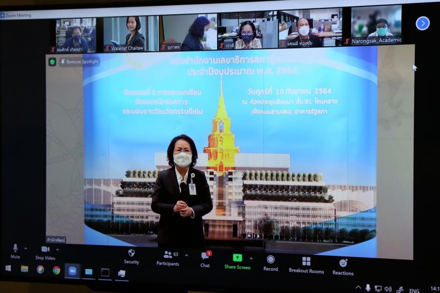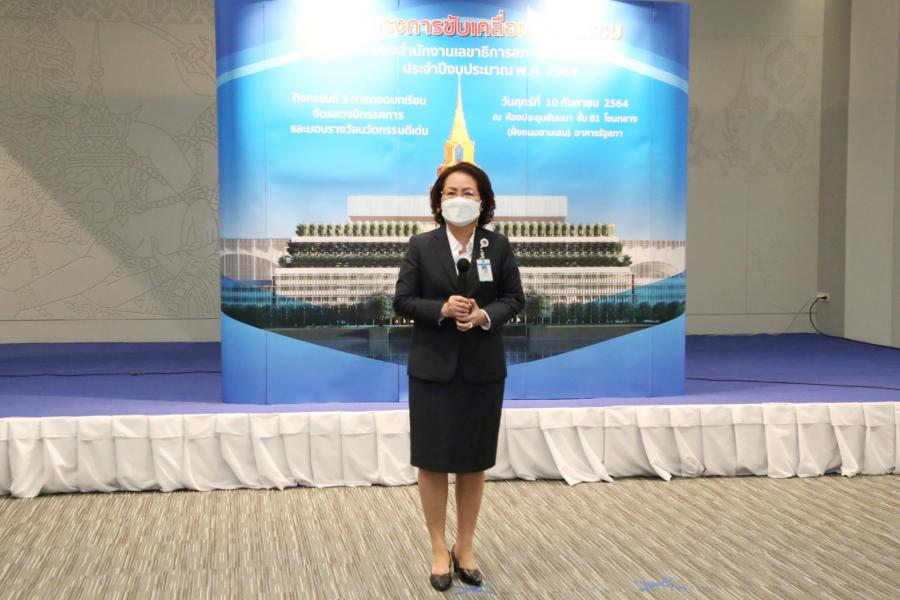 วันศุกร์ที่ 10 กันยายน 2564 เวลา 14.00 นาฬิกา ณ ห้องสัมมนา B1-2 ชั้น B1 (โซนกลาง) อาคารรัฐสภา นางพรพิศ เพชรเจริญ เลขาธิการสภาผู้แทนราษฎร ประธานในพิธีมอบรางวัลนวัตกรรมดีเด่น ประจำปีงบประมาณ 2564 สำหรับผลการประเมินข้อเสนอนวัตกรรม ประจำปีงบประมาณพ.ศ. 2564 โอกาสนี้ นางพรพิศ เพชรเจริญ เลขาธิการสภาผู้แทนราษฎร กล่าวแสดงความยินดีแก่ผู้ได้รับรางวัลว่าหวังเป็นอย่างยิ่งว่ารางวัลนวัตกรรมต่าง ๆ ที่ได้รับในวันนี้จะสามารถนำไปพัฒนาเพื่อให้เกิดผลในทางปฏิบัติจริง อย่างไรก็ตามบุคลากรทุกท่านจะเป็นพลังสำคัญ ในการร่วมแรงร่วมใจขับเคลื่อนภารกิจด้านต่าง ๆ ของสำนักงานฯ ให้ก้าวไปสู่ระบบราชการ 4.0 และสามารถนำเทคโนโลยีเข้ามาประยุกต์ใช้เพื่อให้เกิดประโยชน์สูงสุดต่อไป