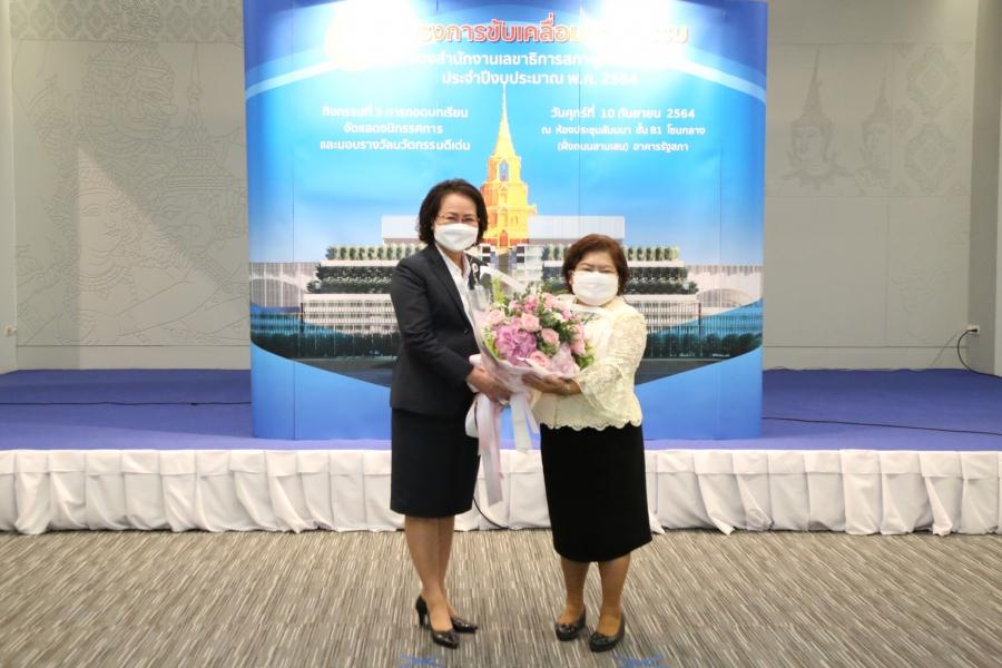 ในโอกาสนี้ นางพรพิศ เพชรเจริญ เลขาธิการสภาผู้แทนราษฎร มอบดอกไม้แสดงมุทิตาจิตและขอบคุณแก่  นางอรวรรณ พันธุ์เปรื่อง รองเลขาธิการสภาผู้แทนราษฎร ในฐานะประธานกรรมการขับเคลื่อนนวัตกรรมของสำนักงานเลขาธิการสภาผู้แทนราษฎรที่ได้ทุ่มเท เสียสละทำงานอย่างเต็มกำลังความสามารถ อีกทั้งยังนำความรู้ และประสบการณ์ขับเคลื่อนงานด้านนวัตกรรมของสำนักงานฯ จนสำเร็จ เป็นไปตามวิสัยทัศน์ และเป้าหมายขององค์กรที่มุ่งสู่การเป็น Smart Parliament