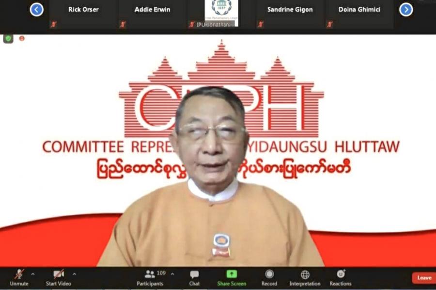 นอกจากนี้ ในระหว่างการอภิปราย U Aung Kyi Nyunt ประธานคณะกรรมการตัวแทนสมัชชาแห่งสหภาพ (Committee Representing the Hluttaw) หรือรัฐสภาเมียนมาที่มาจากการเลือกตั้งในเดือนพฤศจิกายน 2563 ในฐานะแขกรับเชิญพิเศษ ได้กล่าวเรียกร้องให้ประชาคมระหว่างประเทศช่วยเหลือและสนับสนุนให้เมียนมากลับคืนสู่ระบอบประชาธิปไตยและระบบรัฐสภาได้โดยเร็ว เนื่องจากมีประชาชนจำนวนมากเสียชีวิตและได้รับผลกระทบอย่างหนักหลังการยึดอำนาจของกองทัพเมียนมา
