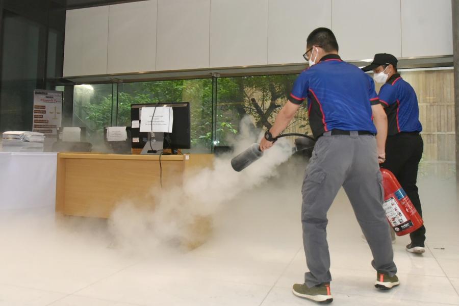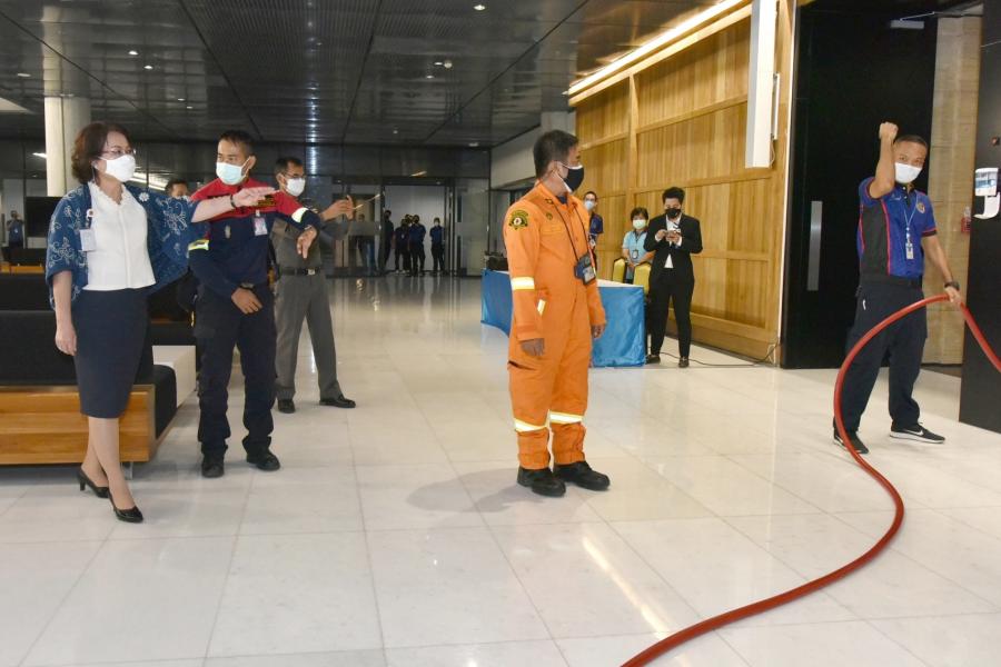 เลขาธิการสภาผู้แทนราษฎร ร่วมสังเกตการณ์การจำลองสถานการณ์และฝึกปฏิบัติเมื่อเกิดเหตุการณ์อัคคีภัยของบุคลากรสำนักรักษาความปลอดภัย